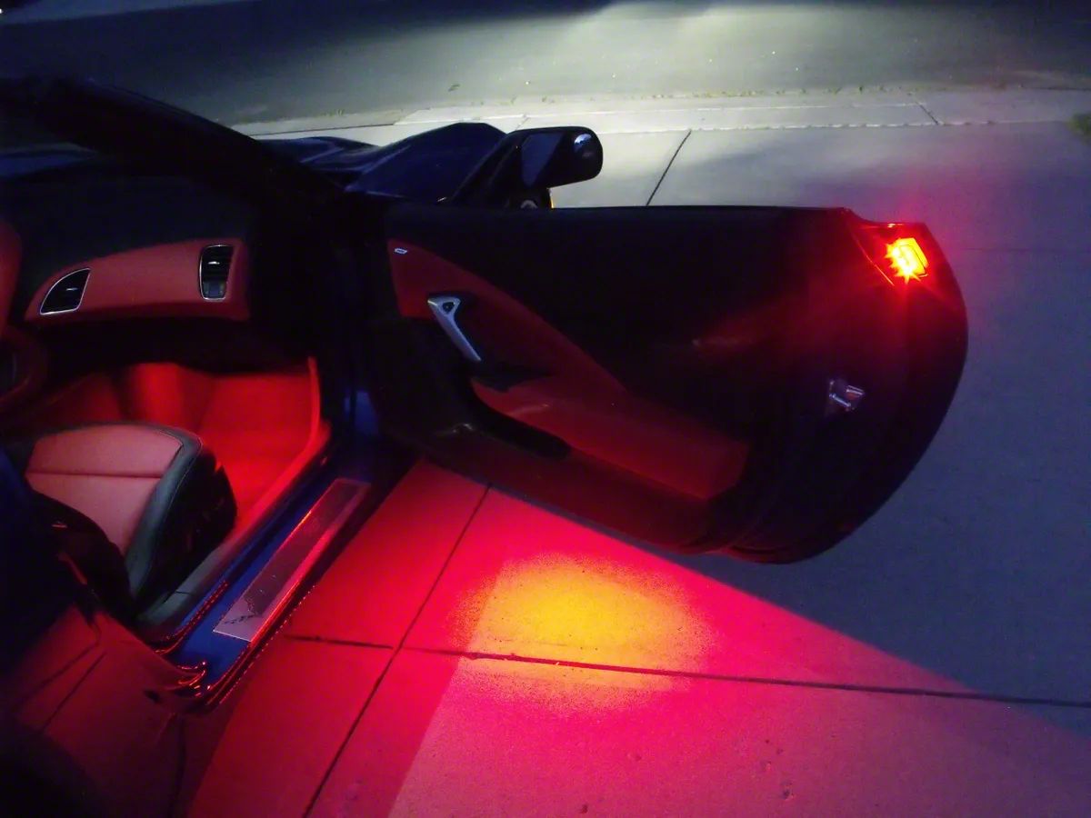 Application. This Footwell and Door Handle LED Puddle Light Kit fits 2014-2019 Chevrolet Corvette C7 Models. It’s a subtle yet stylish upgrade that improves cabin lighting functionality while adding a unique, performance-inspired glow to your vehicle’s interior.