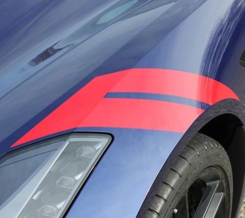 Application. This Racing Hash Stripes Decals fits 2014-2019 Chevrolet Corvette C7 Stingray models. They bring a performance-inspired look to your front fenders, making your vehicle stand out with simple yet eye-catching customization.