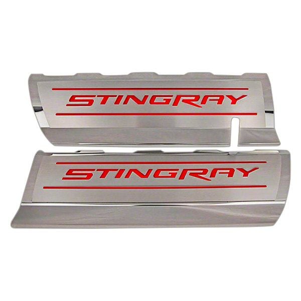Vivid Enhancement. The Fuel Rail Covers with Stingray Logo are high-quality, performance-enhancing accessories specifically made from top-class stainless steel, these covers guarantee durability and tough resistance against rust and corrosion, ensuring they can withstand harsh engine environments and weather conditions. The covers feature a solid bright red inlay, offering a vivid and stunning contrast to your engine bay that effectively elevates your vehicle's aesthetics.