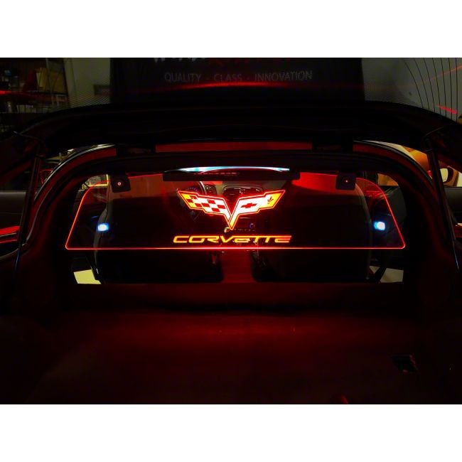 Illuminated Style. The Glow Plate With C6 Flags Logo adds a custom lighting accent to your vehicle’s rear end. This product enhances your car’s visual appeal both during the day and at night. It combines the iconic emblem with Red LED illumination for a truly standout appearance.