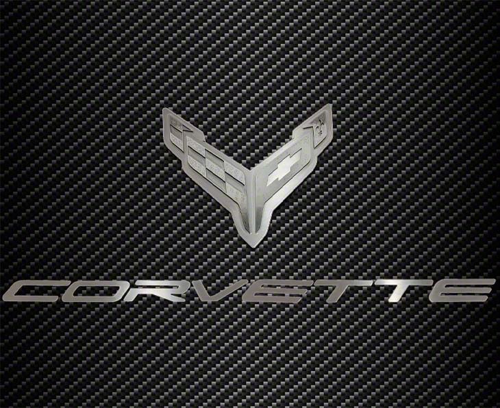 Hood Panel Badge with Flag and Corvette Logo; Stainless Steel (20-26 Corvette C8)Find parts that fit my vehicle