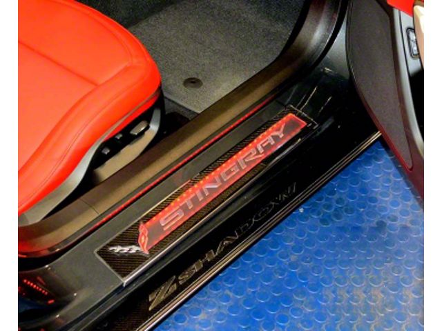 Application. This Illuminated Carbon Fiber Door Sill Overlays fits all 2014-2019 Corvette C7 Stingray models.