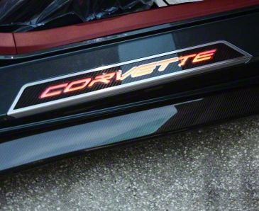 A New Dimension. Elevate your 2020-2026 Corvette C8's interior to new heights with these stunning Illuminated Carbon Fiber Door Sills, adorned with the iconic Corvette lettering. Crafted from premium carbon fiber, these sills not only enhance the visual appeal of your cabin but also contribute to its lightweight and robust character. The intricate carbon fiber weave, meticulously finished, exudes a sense of luxury and performance, setting your C8 apart from the rest.