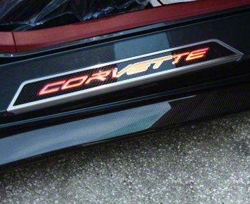 Style and Purpose. Step into luxury with the Illuminated Carbon Fiber Door Sills with Corvette Lettering in Red. These eye-catching door sills are sold as a pair and will add a touch of elegance to Challenger. They're also very functional, absorbing scratches and protecting against abrasion while providing a base for stepping in and out of your vehicle.