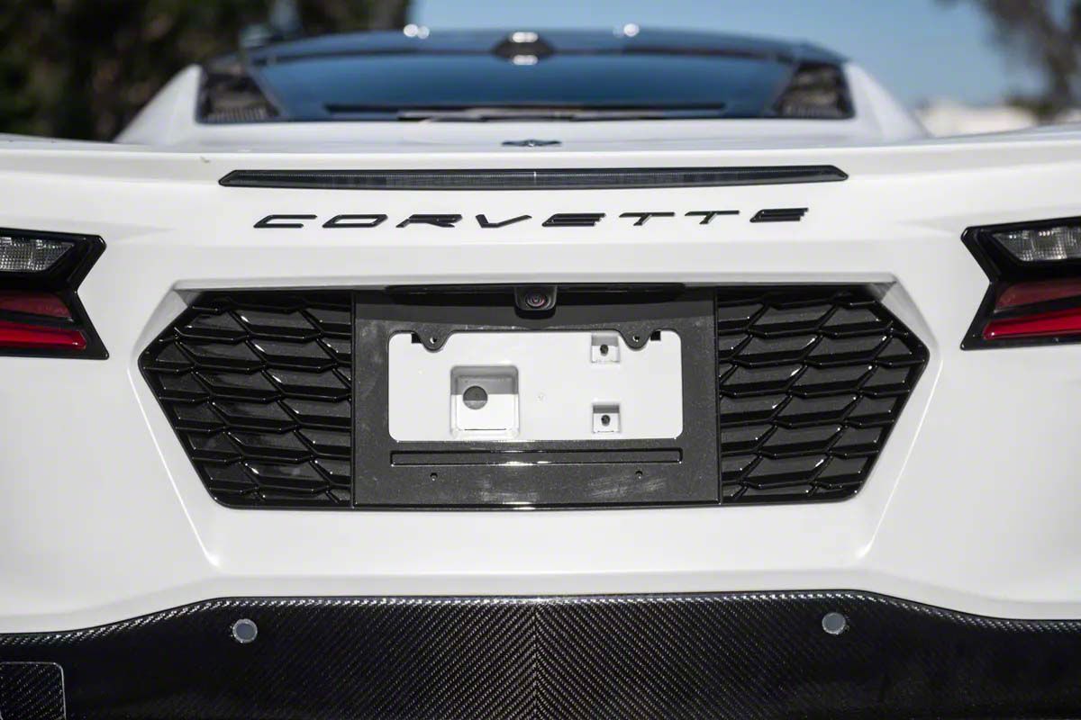 Application. This License Plate Frame Backing fits 2020-2026 Chevrolet Corvette C8 Stingray models.