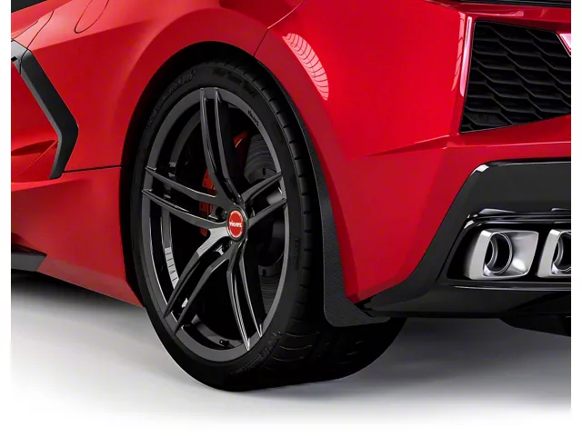 Application. This Mud Flaps for the Front and Rear in Gloss Carbon Fiber Vinyl fits all 2020-2026 Chevrolet Corvette C8 models (Excluding Z06).