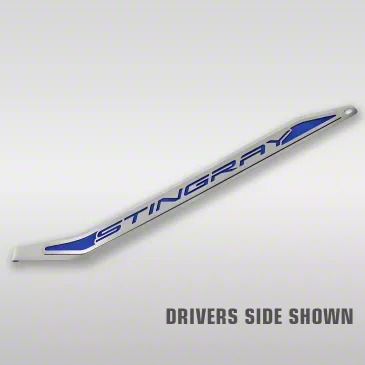 Polished/Brushed Stainless Door Prop with Blue Carbon Fiber Stingray Insert; Passenger Side (20-26 Corvette C8)Find parts that fit my vehicle