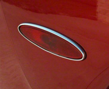 Stylish Side Marker Light Bezels for a Sleek Look. The Side Marker Light Bezels are designed to enhance the appearance of your Corvette, featuring a polished chrome finish rim and a transparent red lens. These bezels offer a stylish upgrade that adds a touch of elegance to the rear of your vehicle.