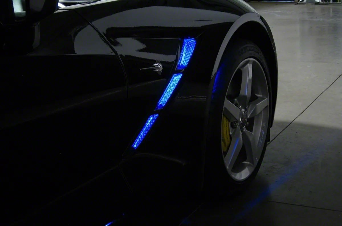 Unique and Stylish Look . The Remote Controlled Fender Cove LED Lighting Kit allows you to customize the lighting effects to suit your preferences. The remote control enables you to change the lighting modes, brightness, and patterns, giving you full control over the aesthetic of your Corvette. Whether you prefer a steady glow or dynamic flashing patterns, this kit offers a variety of options to personalize your vehicle's appearance.