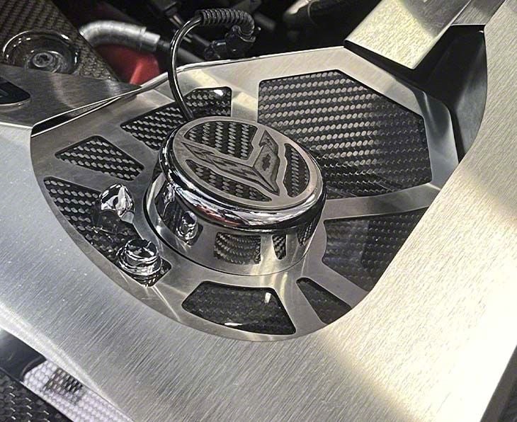 Construction and Features. Constructed from premium stainless steel, these covers are resistant to tarnishing, fading, and rusting, ensuring long-lasting style and durability. The GM-licensed design includes an insert flag emblem and carbon fiber finish that enhance the Corvette’s aesthetic, making it an attractive addition to your engine bay.