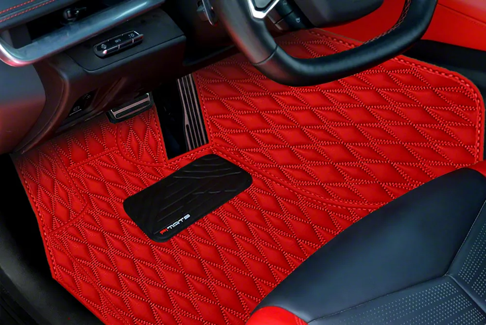 Built from Eco-Friendly Materials. Made for the Chevrolet Corvette C8, these Floor Mats come in a full red finish with a diamond stitch design. Comfortable and heat insulating, these floor mats are crafted from a 5-layer eco friendly material including a polyurethane leather outer layer and a gecko grip material bottom layer.