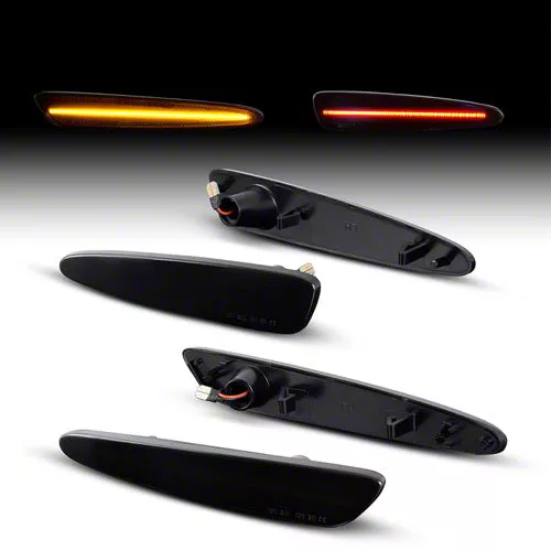 Construction and Appearance. Featuring a smoked lens finish, the side markers contain bright, energy-efficient LEDs enclosed in a durable casing. The materials and finish provide a sleek, darkened look that enhances the vehicle’s aggressive styling while delivering long-lasting illumination.