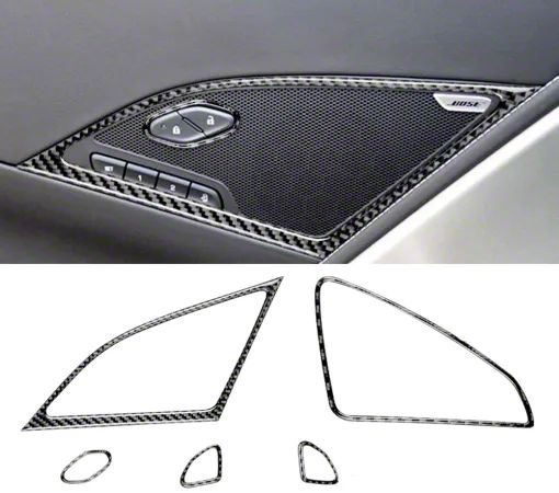 Luxurious Enhancement. The Speaker Door Lock Trim is crafted with genuine, high-quality carbon fiber, adding a touch of luxury and sportiness to your Corvette. This trim enhances the interior aesthetics, giving your vehicle a refined and modern look.