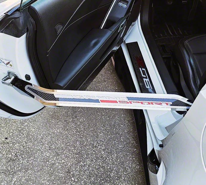Show-Ready Display Accessory. The Stainless Door Prop with Real Carbon Fiber Grand Sport Insert is the perfect finishing touch for Corvette owners who take pride in presentation. Designed specifically for the driver side of 2014 to 2019 Corvette C7 models, this high-quality door prop enhances your car's presence at shows by keeping the door open in a clean, stylish manner. Featuring an officially licensed "Grand Sport" script, it adds a performance-inspired flair that draws attention without compromising functionality.