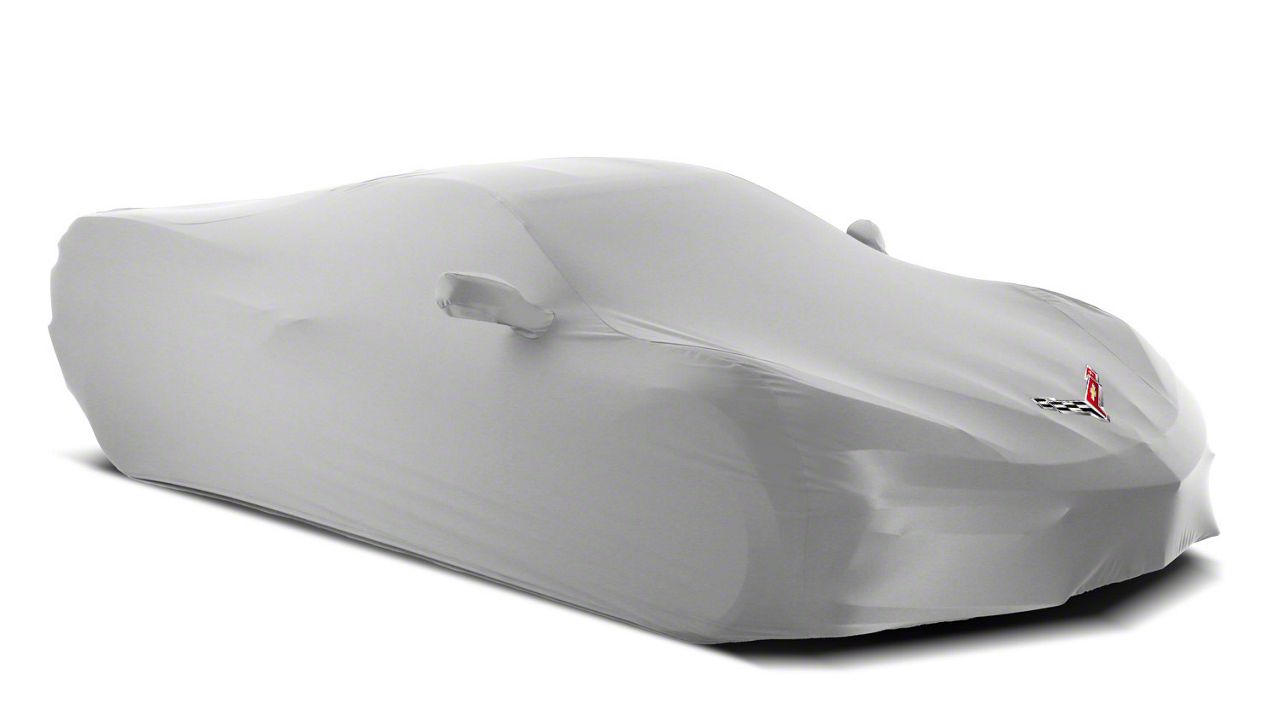 Tailored Indoor Protection. The SuperStretch Indoor Car Cover is custom-engineered for 2020-2026 Chevrolet Corvette C8 Models and provides secure and stylish indoor protection. Designed to maintain the condition of your high-performance vehicle, this sleek cover features a prominent Chevrolet Flag logo and matte white finish, complementing its showroom appeal. Its snug fit and flexible stretch material ensure that your vehicle remains shielded from dust and indoor hazards without using external fasteners.