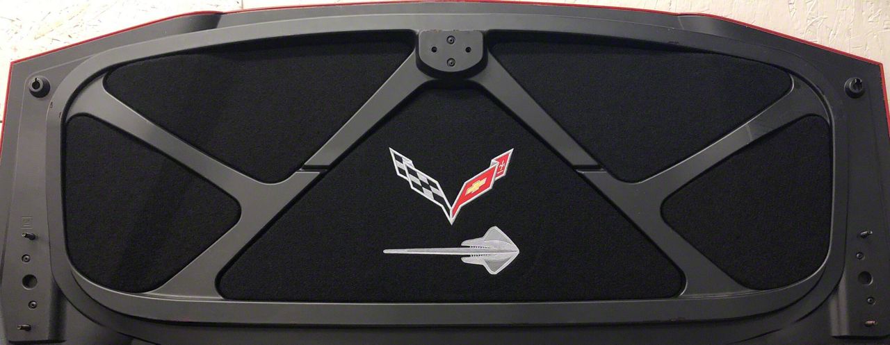 Upgrade Your Corvette’s Style with a Trunk Lid Liner Featuring the Chevrolet Bowtie and Stingray Logo. This Trunk Lid Liner adds a refined touch to your Corvette’s trunk space, showcasing the Chevrolet Bowtie and Stingray logos on a matte black finish. This heavy-duty liner offers a stylish and functional enhancement, giving your trunk a custom look.