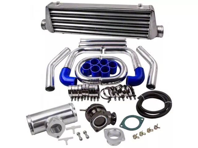 Installation. This intercooler kit installs as a direct bolt-on upgrade and includes all the essential hardware, including clamps, silicone couplers, and mandrel-bent aluminum piping. While designed as a universal fit, some trimming or adjustment may be necessary depending on the vehicle’s engine bay layout. The Type-RS blow-off valve and flange pipe adapter are included to simplify integration with most turbocharged or supercharged setups.