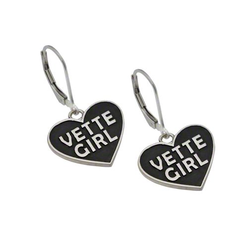 Vette Girl Heart Earrings; Sterling Silver