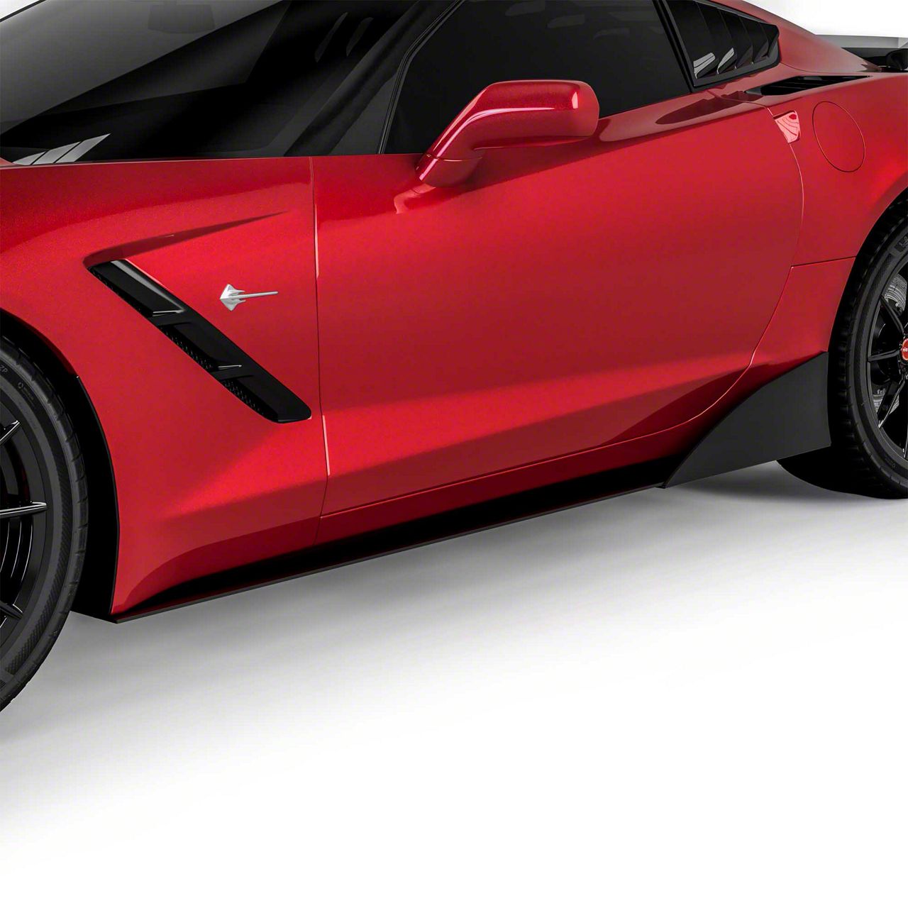 Application. This VZR1 Style Side Skirt Splitters in Textured Black fits all 2014-2019 Chevrolet Corvette models (Excluding ZR1).