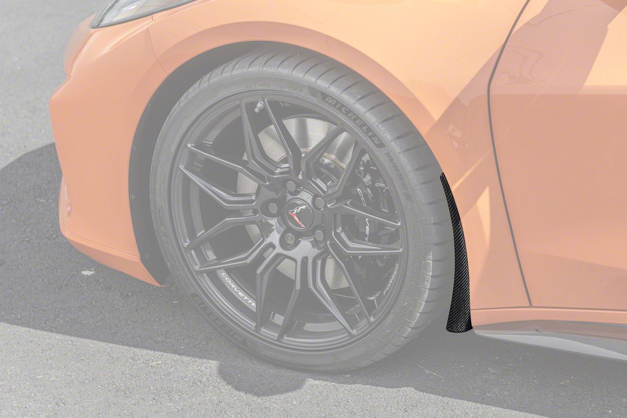 Application. The XL Extended Package Front Splash Guards; Carbon Fiber fit 2023-2026 Corvette C8 E-Ray, Z06 models.