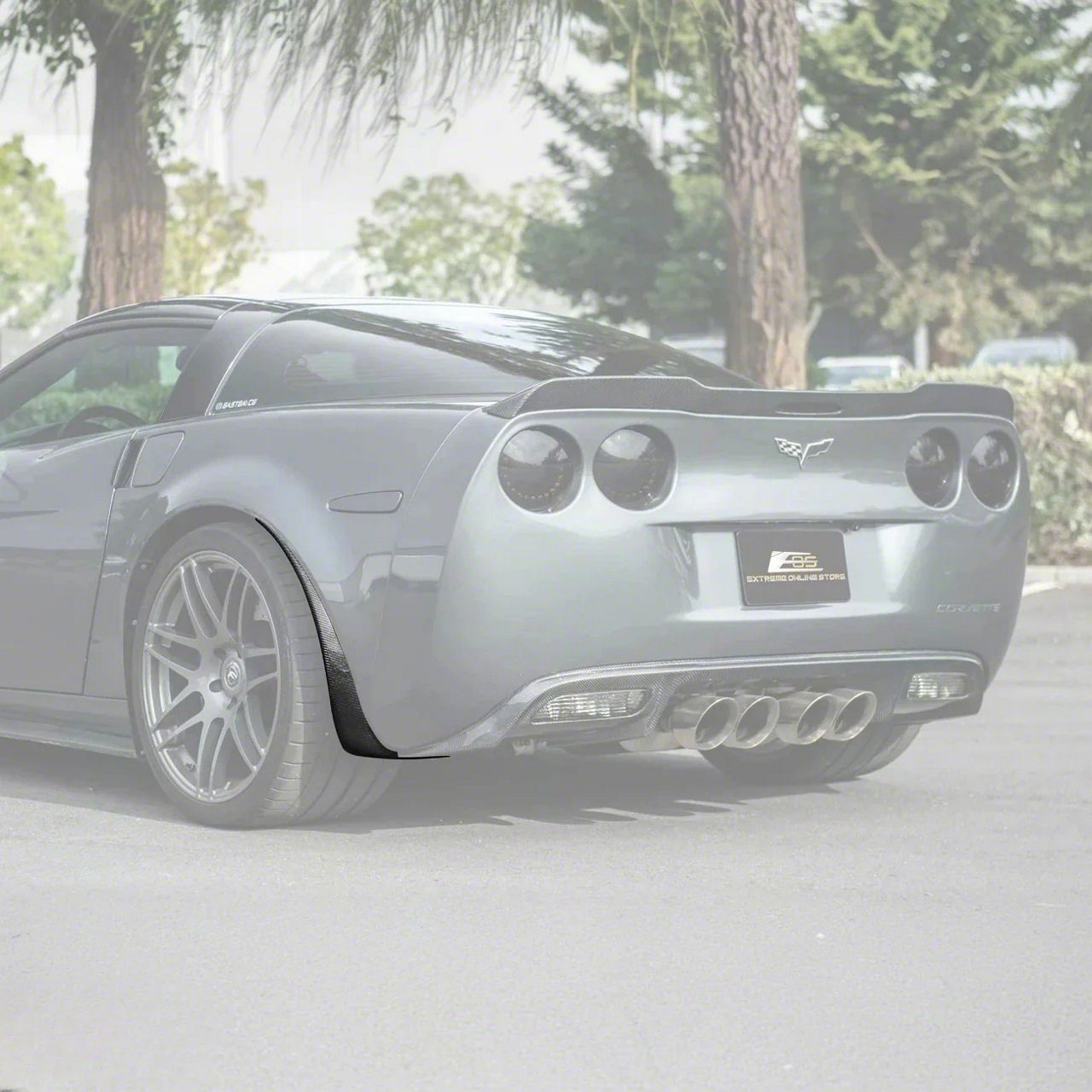 Construction and Appearance. Built from dry pre-preg carbon fiber, these splash guards are lightweight yet incredibly strong. The high-gloss UV-protected finish prevents yellowing and fading over time while delivering a sleek, race-ready look. Their precise contours match the bodylines of the Corvette C6 widebody for a clean and factory-like appearance.