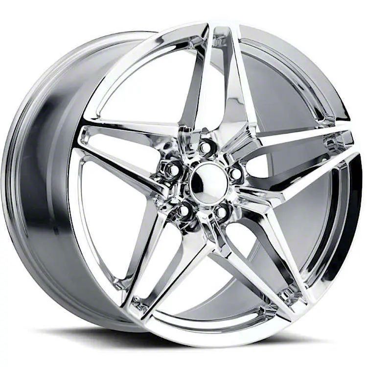 Application. This Factory Reproductions C7 ZR1 Replica Chrome Wheel; Front Only; 18x8.5, with a backspace of 6.955 Inch, 176.7mm; and bolt pattern of 5 x 120.65mm (5 x 4.75-Inch), ensures precise alignment and unwavering stability. Designed to fit the 2005-2013 Chevrolet Corvette C6 Base Models, it stands out as a tailored enhancement. Sold individually.