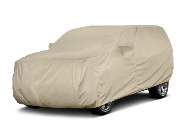 Covercraft Tan Flannel Custom Car Covers are going to be custom-fit to your exact car, truck, SUV, or van. Each custom car cover will have built-in urethane elastic that is sewn into the front and rear hems for easy installation. At the bottom of the cover, there will be reinforced non-scratch grommets to protect your paint.