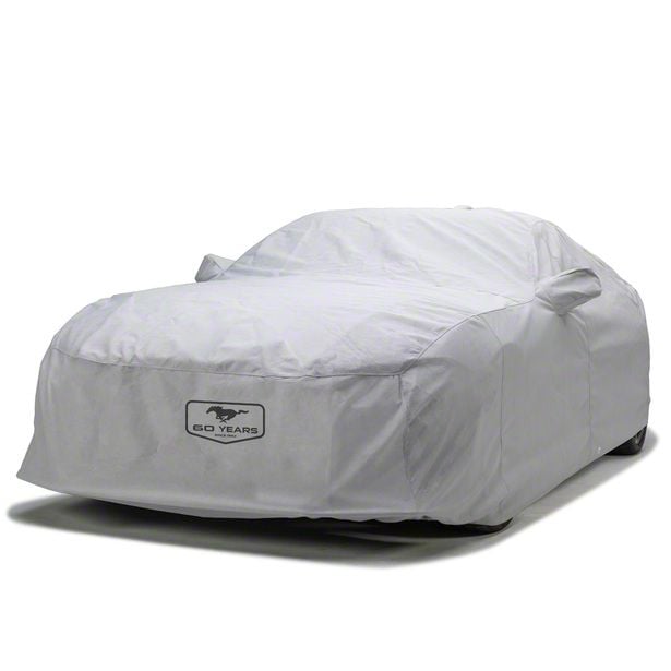 Our most popular all-weather Custom Car Cover material that pampers your Ford Mustang paint & finish now with an Official "60th Anniversary Mustang" logo!
