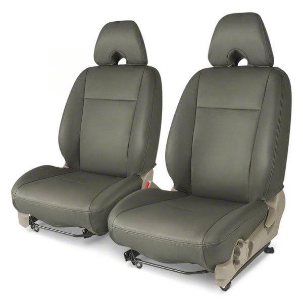 Premium Vehicle Upgrade. The Leatherette Custom Front Row Seat Covers; Medium Gray provide a refined seating solution designed to enhance the appearance and comfort of your vehicle's interior. They are crafted to cover the front row seats snugly, improving both the aesthetic appeal and durability of factory seats.