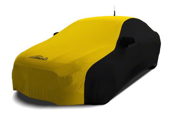 Description. Car Cover; Custom Vehicle Cover Satin Stretch; 2-Tone Black Sides Velocity Yellow Center