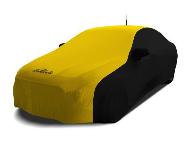Description. Car Cover; Custom Vehicle Cover Satin Stretch; 2-Tone Black Sides Velocity Yellow Center