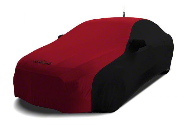 Description. Car Cover; Custom Vehicle Cover Satin Stretch; 2-Tone Black Sides Pure Red Center