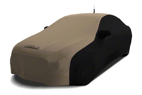 Description. Car Cover; Custom Vehicle Cover Satin Stretch; 2-Tone Black Sides Sahara Tan Center