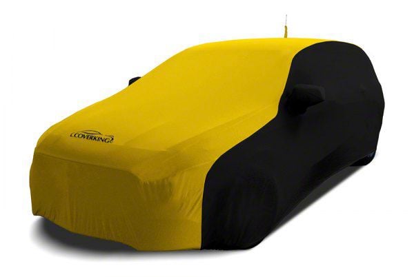 Description. Car Cover; Custom Vehicle Cover Satin Stretch; 2-Tone Black Sides Velocity Yellow Center