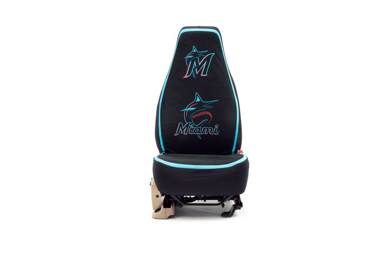 Coverking Universal Ultisuede Seat Cover with Miami Marlins Logo (Universal; Some Adaptation May Be Required)