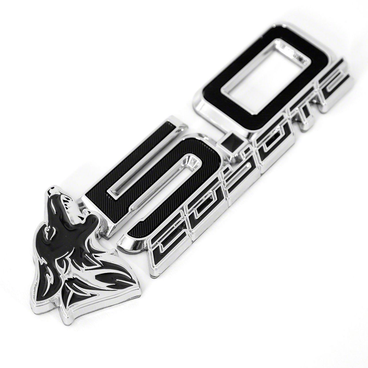 Construction and Appearance. These badges feature a durable two-piece construction with a chrome finish and a textured black painted insert for contrast. The design incorporates the iconic Coyote logo along with italicized, strikethrough text, delivering a modern yet recognizable aesthetic that complements the S650 Mustang body style.