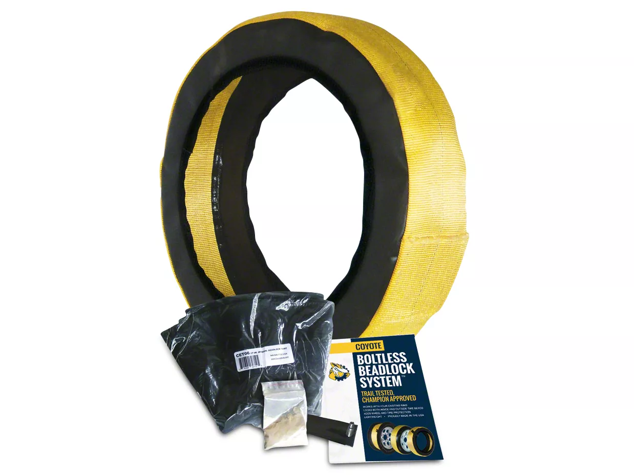 Sturdy Construction. These new and improved beadlocks feature new tread material that is 9 times stronger than previous materials. At the heart of this beadlock system is a heavy-duty inner tube. This beadlock is street legal and meets DOT standards. Coyote covers this product with a 5-year limited warranty against defects in workmanship or materials. The inner tube is covered by a 1-year warranty.
