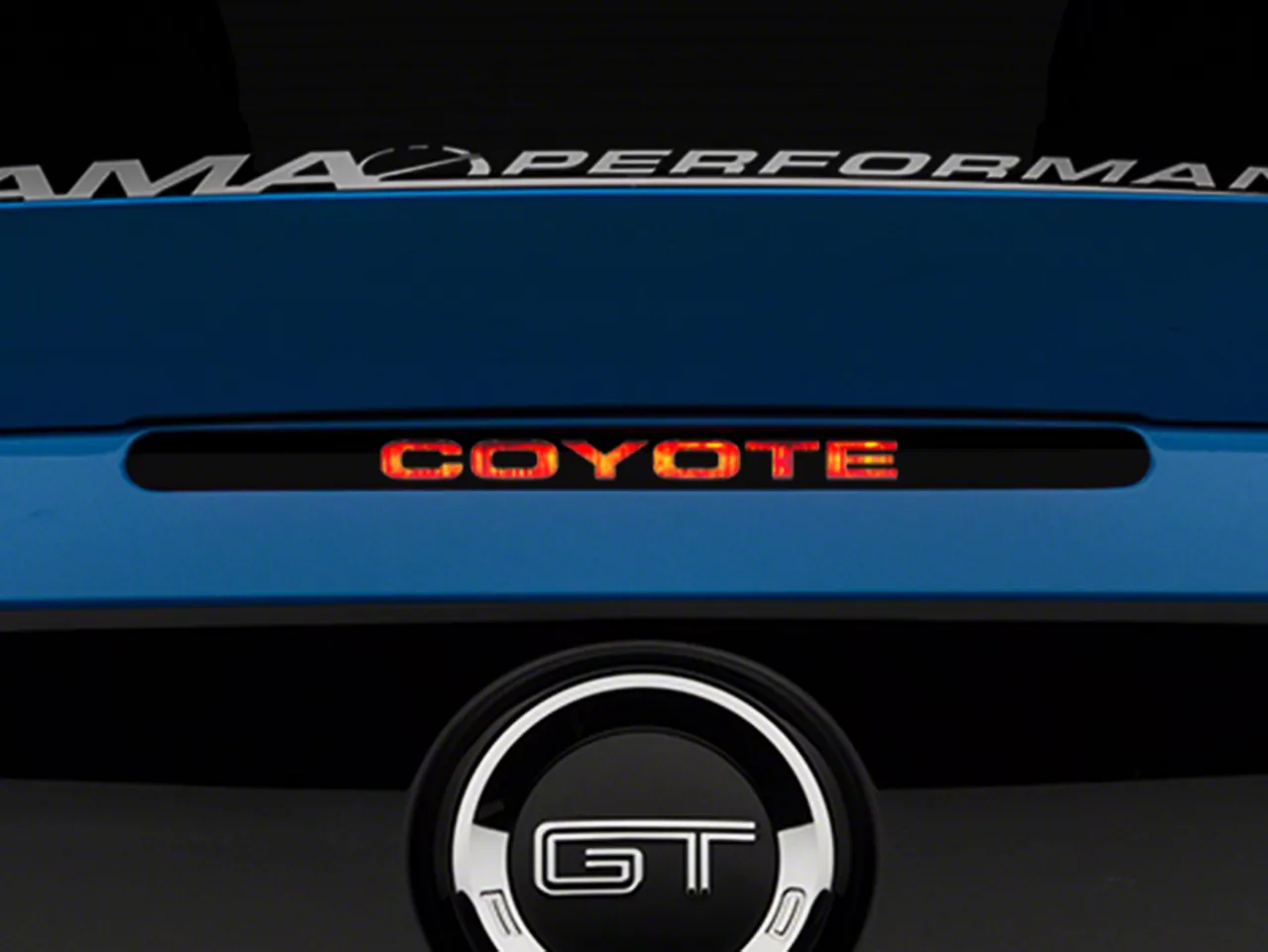 Great Custom Styling. Add an extra touch of custom styling to your Mustang with a "coyote" Third Brake Light Decal. This coyote Third Brake Light Decal will be sure to get you noticed whether you're at the track, a car show or just sitting in traffic.