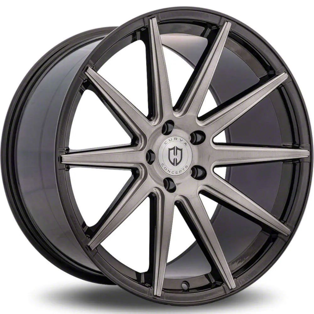 Curva Concepts C49 Gloss Black Brushed Wheel; 20x9. The Curva Concepts C49 Gloss Black Brushed Wheel offers a striking balance of style and refinement. Its unique design accentuates the vehicle's aesthetic, while the premium construction underscores its robust nature. This wheel is a perfect choice for those seeking both elegance and a strong visual statement.