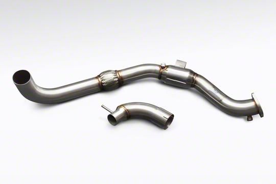 Heavy-Duty Downpipe. Whether its a replacement piece or an upgrade to your Mustang, this CVF 3-Inch Stainless Steel Catted Downpipe is for you. Designed to improve the airflow and upgrade your car's performance from it's OEM part, this downpipe features a 200 cell high-flow catalytic converter, and mandrel-bent tubes to ensure clean bends and smooth airflow.