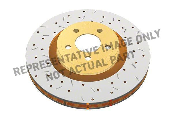 Superior Heat Management. This DBA 4000 Series XS Gold Cross Drilled and Slotted Rotor; Front employs a combination of cross-drilled holes and slotted grooves to continually refresh the pad friction surface, channel away gasses, dust, and heat, and maintain consistent braking performance under repeated stops. The gold zinc plating on the rotor hat and barrel prevents corrosion, ensuring both function and appearance over time.