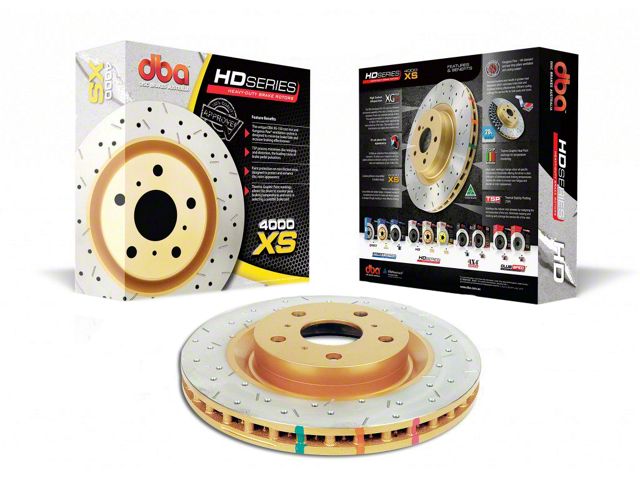 Improved Braking Performance. The DBA Drilled & Slotted 4000XS Series Rotor Rear Rotors are designed with a drilled and slotted design to enhance your Mustang's stopping power up to 20%. This design offers efficient heat dissipation, thereby reducing warpage and preventing brake pad fade, for an enhanced braking performance.
