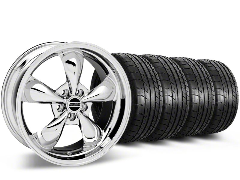 Easy "One Click" Shopping. This standard combo kit features (4) Deep Dish Bullitt Chrome Wheels – 20x8.5 and (4) Mickey Thompson Street Comp Tires – 255/35R20. This popular Wheel and Tire Kit has been created for the exact specifications of your 2015-2023 Mustang for a guaranteed perfect fit with no rubbing or clearance issues.