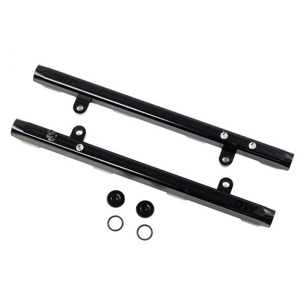Construction and Appearance. Constructed from premium materials for strength and durability, these fuel rails feature a sleek glossy black finish that resists corrosion and adds a subtle, aggressive look to your engine bay. The precision-machined design ensures excellent fitment and functionality, while the anodized surface finish delivers both style and protection.