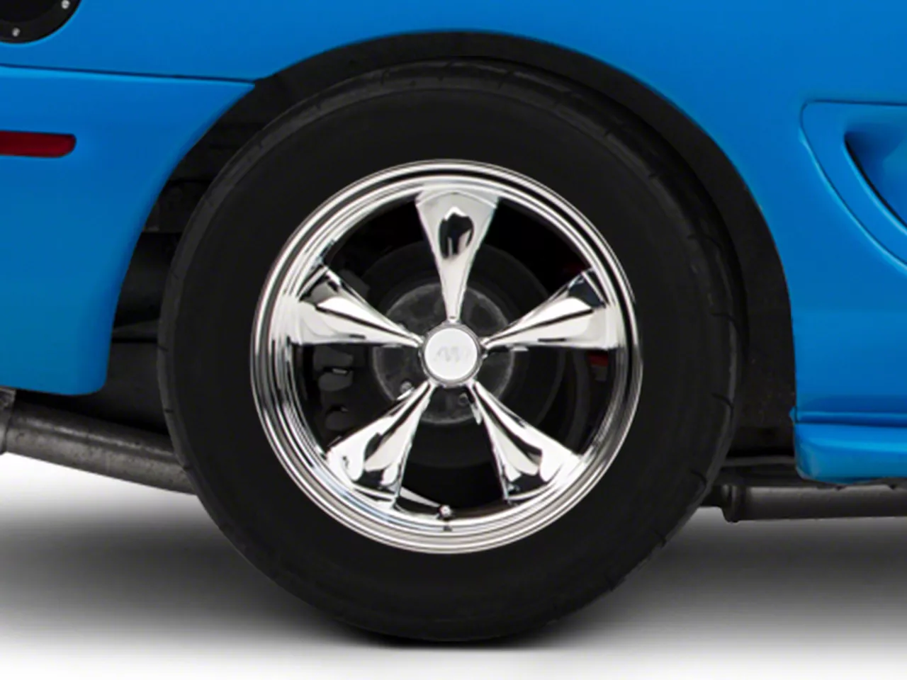 Application. This American Muscle Wheels Deep Dish Bullitt Chrome Wheel; Rear Only; 17x10.5 with a backspace of 6.853 Inch, 174.1mm and bolt pattern of 5 x 114.3mm (5 x 4.5-Inch) ensures impeccable alignment and unmatched driving stability. Specifically designed for 1994-1998 Mustang models, each wheel is sold individually.
