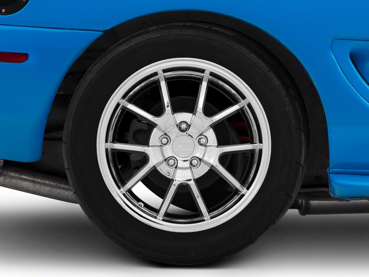 The 18x10 American Muscle Wheels Deep Dish FR500 Style Chrome Wheel has a chrome finish that is accomplished in a 3-step plating process, including copper, nickel and chrome.