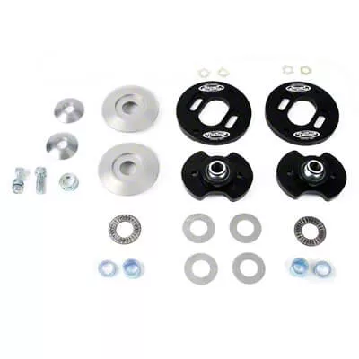 Long-Lasting Toughness. Engineered for high-performance use, this Camber Plate Upgrade Kit features heavy-duty construction. It comes with heavy-duty plates and a bearing race. The plates also sport a black powder-coated finish for excellent service life and extra visual appeal.