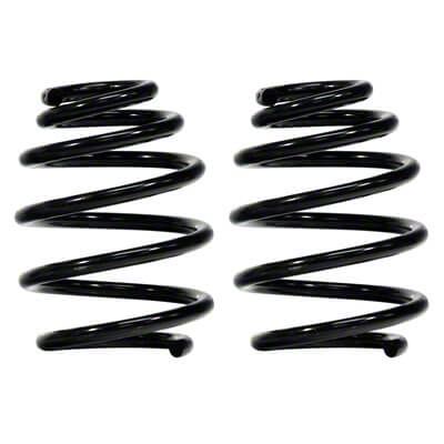 High-Quality Steel Construction. Built for long-lasting functionality, these Front Lowering Springs feature high-quality steel with high tensile strength. The exceptionally durable construction is further reinforced by a black powder-coated finish to prevent corrosion. Furthermore, these drop springs are crafted for optimal balance with OEM and aftermarket shocks.