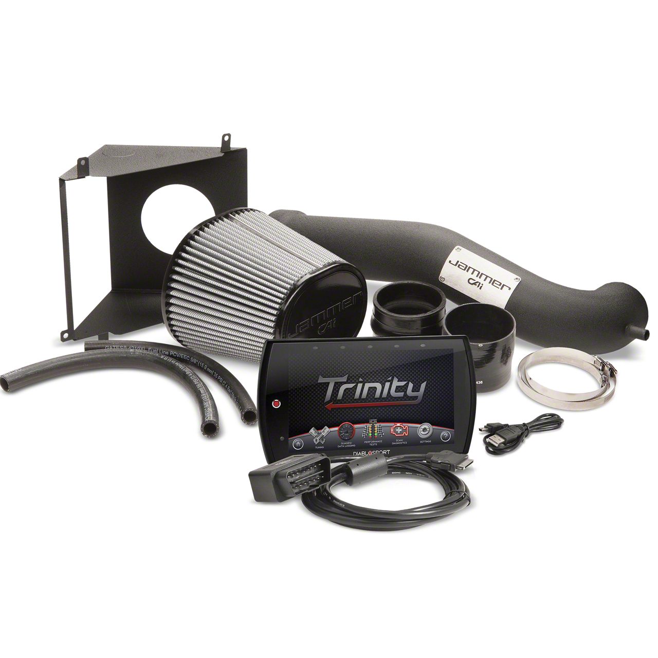 Custom Tuning Solution. Installing this Jammer Intake System needs calibration of your car’s ECU. DiabloSport has already addressed this requirement by including the Trinity 2 Tuner with pre-loaded, high-performance tunes and custom tuning capability. You can operate this by using the OBD connector and the different features on the high-definition monitor.
