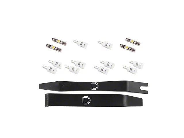 Modern Upgrade. The LED Interior Lighting Kit offers a complete upgrade for your vehicle's cabin lighting, featuring Diode Dynamics' superior LED technology. This kit includes all necessary LED bulbs to transform your interior with a 6000K cool white color temperature, providing a modern, bright, and crisp light that enhances visibility and aesthetics inside your vehicle.